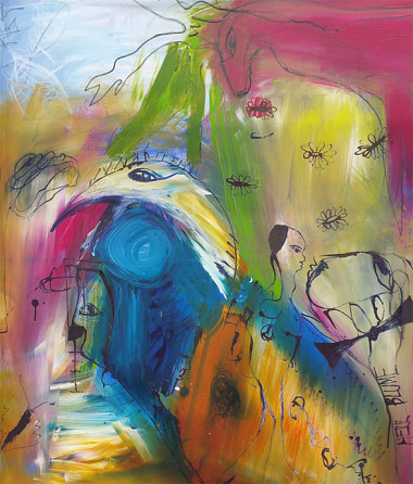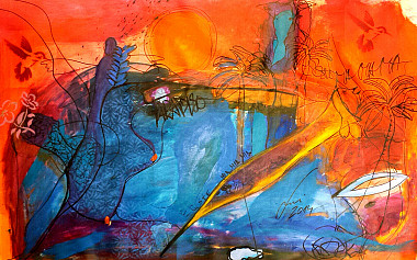 Wer den Himmel im Wasser sieht, sieht die Fische auf den Bäumen 95 x 115 cm